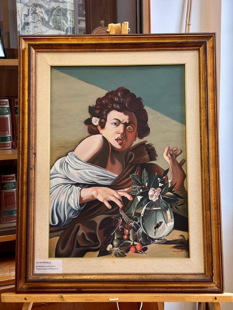 • Roberto Campagna, pittore e scultore, espone opere profondamente legate all’influenza di Caravaggio, affrontando temi come le maschere e il teatro. Le sue tele e sculture, fortemente espressive, sono il risultato di un lungo studio sul colore, la luce e la forma.